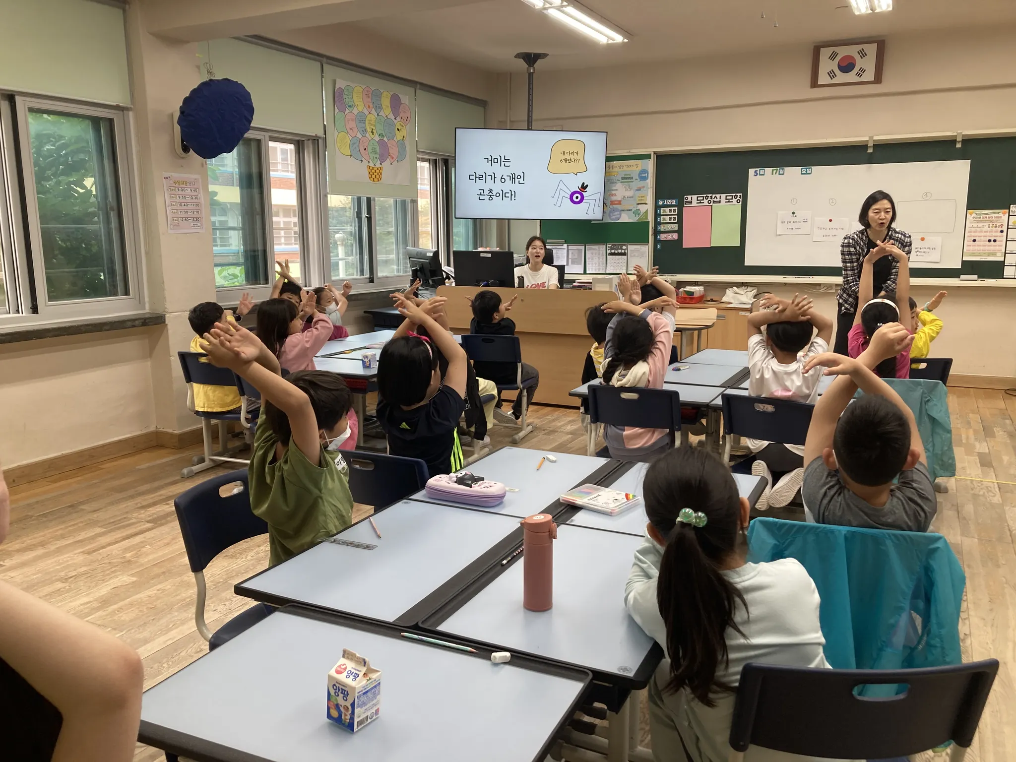 ‘거미가 온다’ 수업을 시작으로 첫 만남을 시작하였다. 먼저 낯선 선생님을 마주할 학생들을 고려하여 감각적 활동으로 친숙한 분위기를 만들기로 했다. 청각, 시각 등의 감각적 자료를 투입하여 평소에는 듣기 어려운 거미의 소리를 확대하여 들어보았다. 그리고 거미처럼 거미줄을 치고 이동할 수 있도록 자연스런 움직임을 표현하였다.