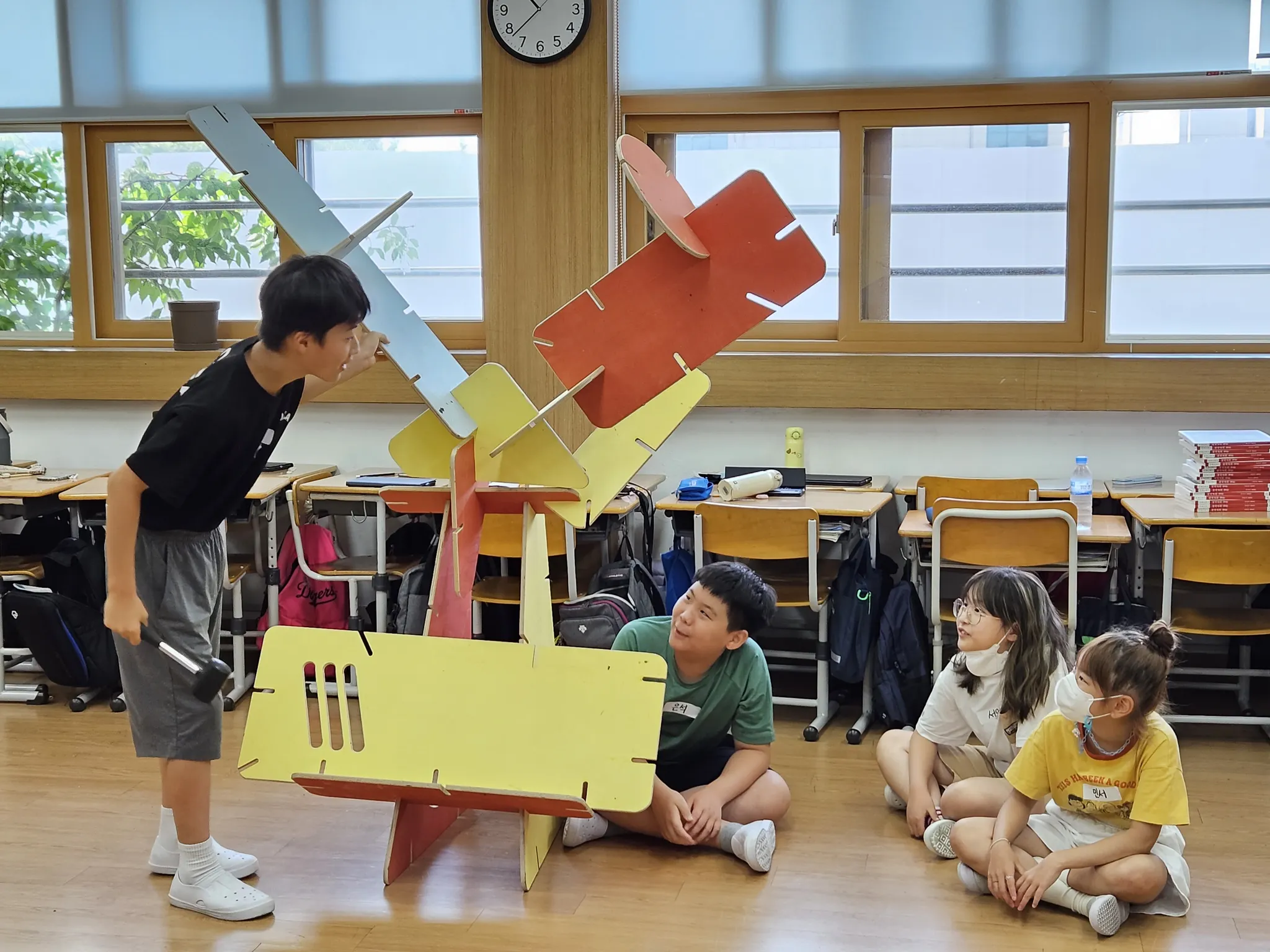 부탁하며 우리의 활동이 시작된다. ‘이미 나를 알고 있는 아이들은 나를 어떻게 바라봐줄까.’하는 걱정과 달리 나를 '아차차'교관으로 잘 받아들여주었고, 아차차 교관이 아닌 리더로 들어왔을 때에도 아이들은 나에게 "선생님 아차차 교관은 어디있어요?"라고 물으며 역할놀이를 즐기는 아이들의 모습이 인상적이었다. 프로젝트의 마지막 쯤 수업을 통해 아이들이 익숙한 학교를 좀 더 낯설게 바라보고 마주하는 모습이 의미 있었으며, 우리 프로젝트를 경험한 아이들이 몇 년 뒤 새롭게 만들어진 학교를 어떻게 바라보고 마주할지 궁금하다.(윤성우 예술가)
