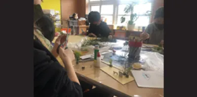 각자 방향별로 맡은 부분의 학교 모형을 공작하기