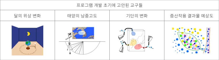 그런데 대부분은 학교에서 간단히 진행할 수 있는 실험에 포커스가 맞춰져서 그런지 애니메이션 촬영에 활용하기에는 적합하지 않았습니다. 따라서 교구를 직접 제작하자는 생각에 이르렀고, 필요한 교구를 설계하게 되었습니다. 이에 지역에서 평소에 알고 지내던 예술가이신 김진송 선생님*을 찾아뵙고 자문을 구하기도 하였습니다.