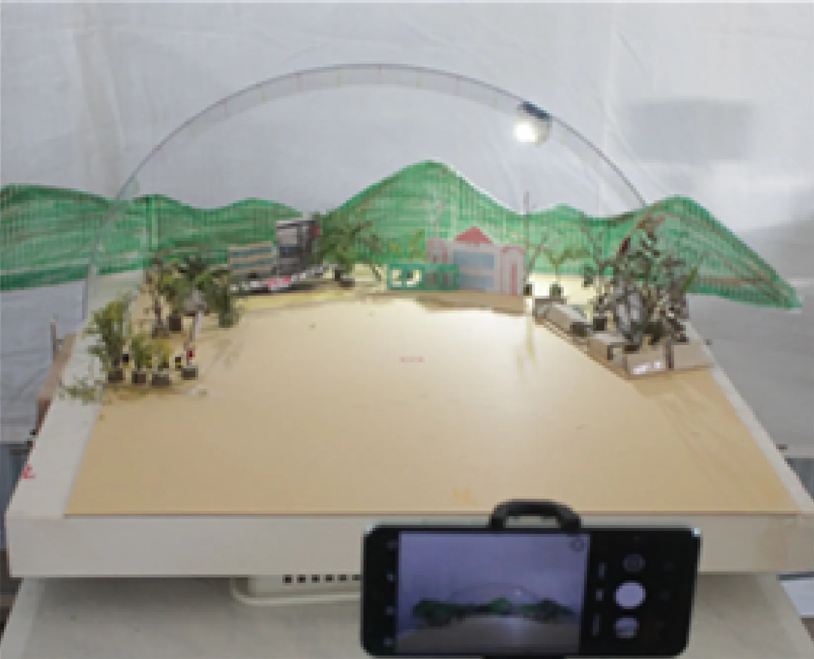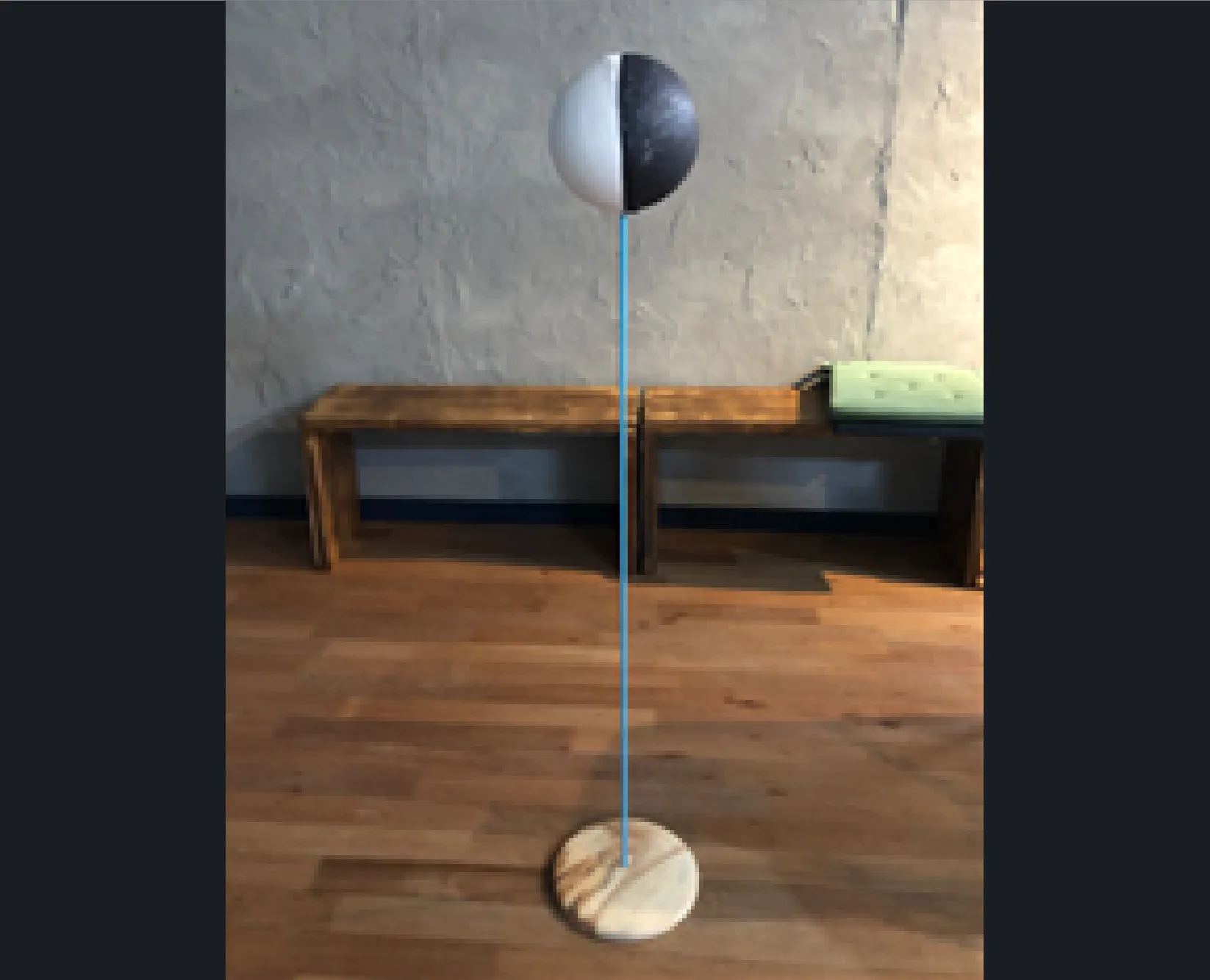 자연광에서 조명을 이용하여 달의 밝고 어두운 면을 표현하기 어려워 스티로폼 어구에 색을 칠하여 명암을 표시하였습니다.