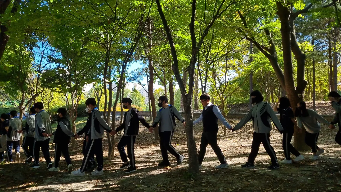 가장 먼저 둔산중학교 1학년 60여 명의 학생에게 진로와 자기인식에 대한 설문을 실시하였습니다. 진로 결정에 가장 어려운 점은 내가 잘하고 좋아하는 것이 무엇인지 모르는 것, 두 번째 요인은 자신감 부족이었습니다. 이러한 특성을 바탕으로 거의 모든 활동에서 ‘원하는 움직임을 스스로 질문하기’, ‘솔직하게 표현하고 용기 내어 다양한 움직임을 시도하기’, 그룹 활동에서 ‘부드럽고 친절하게 반응하기’, ‘무엇을 느꼈는지, 알게 되었는지 스스로 인지하고 말과 글, 그림으로 표현하기’를 하도록 반복적으로 안내하고 격려하였습니다.